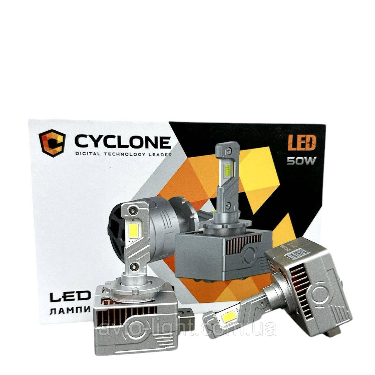 Світлодіодні LED-лампи нового покоління від виробника CYCLONE. Світловий потік перевищує світловий потік ксенонового світла. Завдяки більшій світловидатності та меншим енергоспоживанням світлодіодна лампа є чудовою заміною галогенної та ксенонової. Новітні технології з виробництва світлодіодів дали змогу розробникам отримати потужний світловий потік, що перевищує ксеноновий. Радіатор з авіаційного алюмінію з великою площею та вбудований кулер ідеально відводить тепло від лампи, що дає змогу використовувати світлодіоди на повну потужність. Водночас ні сама лампа, ні штатна оптика автомобіля не перегріваються. Розташування світлодіодів, що повністю збігається з розташуванням ниток накала оригінальних ламп.